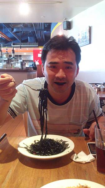 接下來就去Capricciosa吃來關島必吃的墨魚麵了。