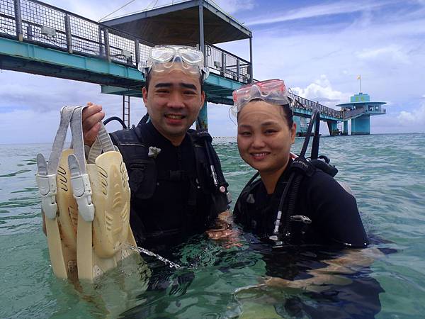 吃完早餐,我們去參加小康潛水的水肺潛水行程。話說,我們的PENTAX相機上面寫防水可達12m,但是我們帶去潛到大概2m就進水了Q_Q,不只整台相機報銷,連前一天的相片都毀了Q_Q。