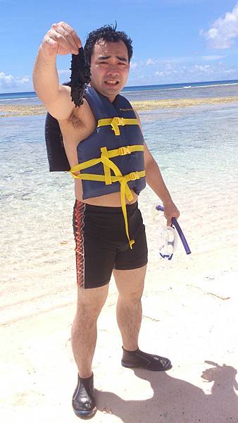 我在這邊浮潛真的潛夠本了,潛到累自己爬上岸來休息,