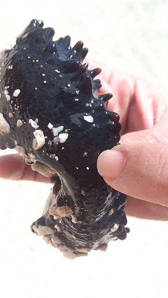 這海參剛好身上就黏了一顆,看上去就很清楚了。