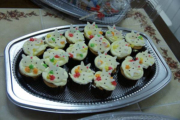 杯子蛋糕是用兔子做主題。算好人數,大人小孩一人一個。因為考慮到都是小小孩要吃,所以店家特別做成軟質的杯子蛋糕。