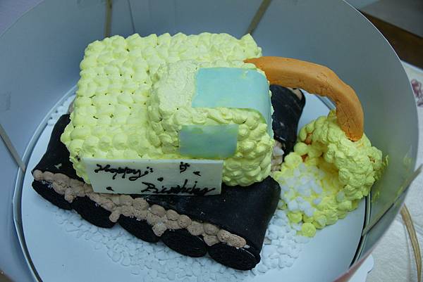 最後的成品非常棒,可惜我們在運送過程中稍微壓到了車頂XD但是還是非常滿意這個挖土機蛋糕!