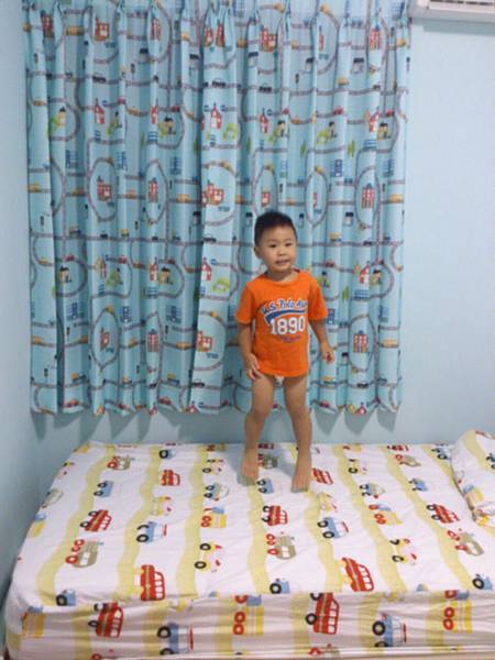 Angus:yomi妹妹的床比較好,我的床高高,這個床(指著爸媽的床)也高高,都會掉下來,妹妹的床比較好。