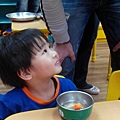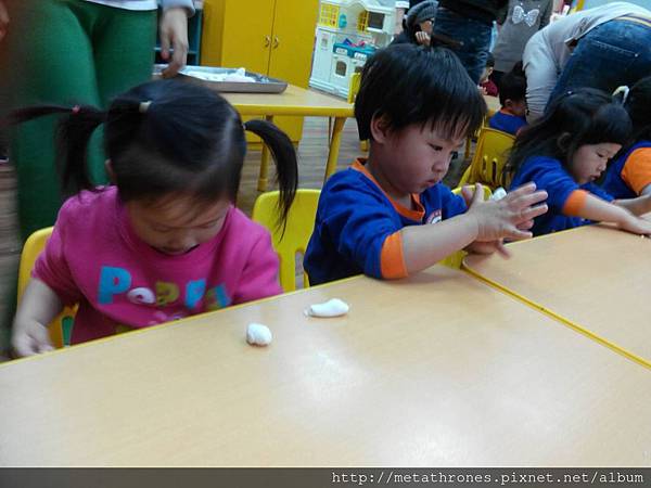 當時,小朋友們也正在搓湯圓,結束參觀準備離開的時候,外師正拿著一本有關年獸的繪本說故事。