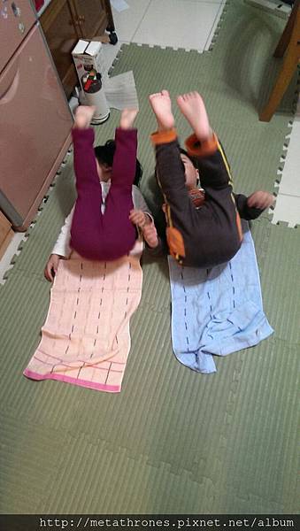 廚師的圍裙(其實就是一條毛巾罷了)往地上一鋪,就變成瑜珈墊了。