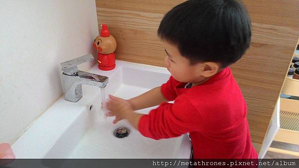大人吃飽以後換小人進來洗手吃飯了喔。