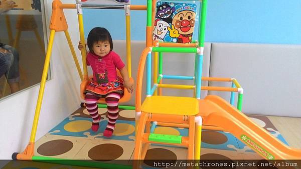 吃完飯,大人輪流吃甜點,小人丟到樓上遊戲區去玩,