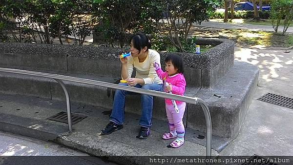 舅媽拿出長長的的冰雪奇緣泡泡給小宓玩,小宓很努力的學大家吹泡泡(明明這種泡泡不是用吹的啊XD)