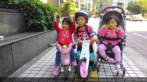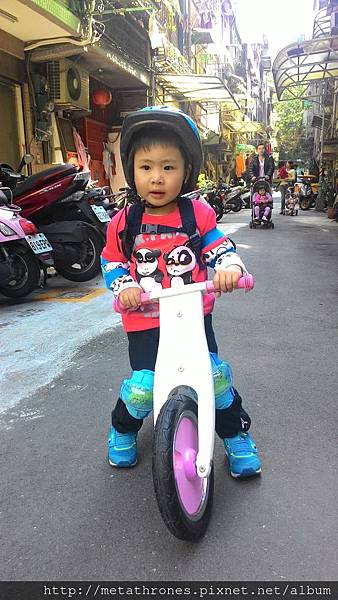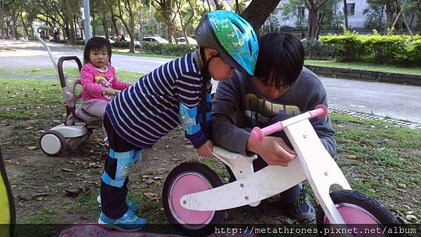 小宓看哥哥騎車這麼開心,也不甘示弱的霸佔西西姐姐的腳踏車來騎。(他自己當然還不會騎...要舅舅在後面幫忙推推)