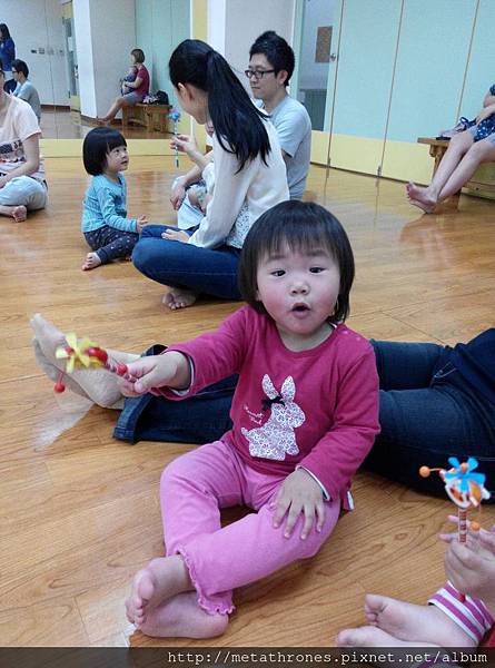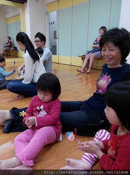 信義運動中心還有發兒童節的禮物喔,是很可愛的手搖鼓,YOMI在手上把玩了一整天。