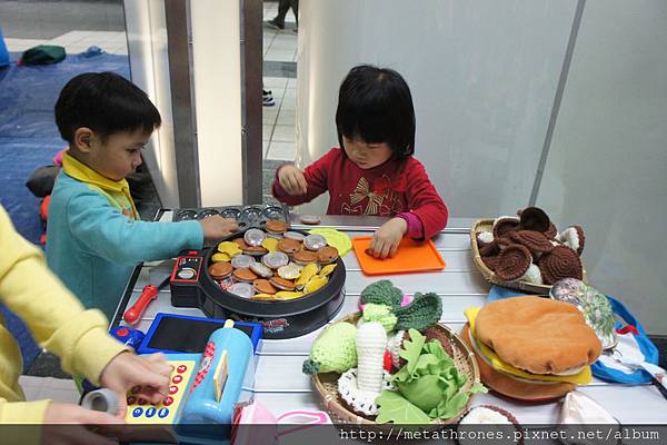每次都會有的辦家家酒,還有買菜購物遊戲,最貼心的是還有準備玩具貨幣跟錢包,志工會陪小朋友玩,