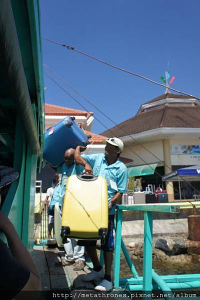 碼頭有專值搬運行李的人,只要給小費就會幫忙搬,行李都統一交給他們處理