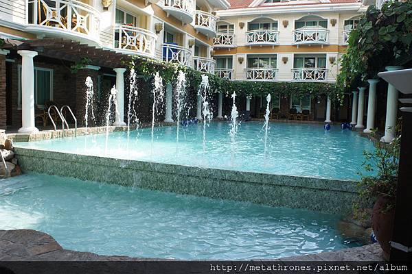 一進門就是大大的游泳池,房間都圍繞著這個泳池