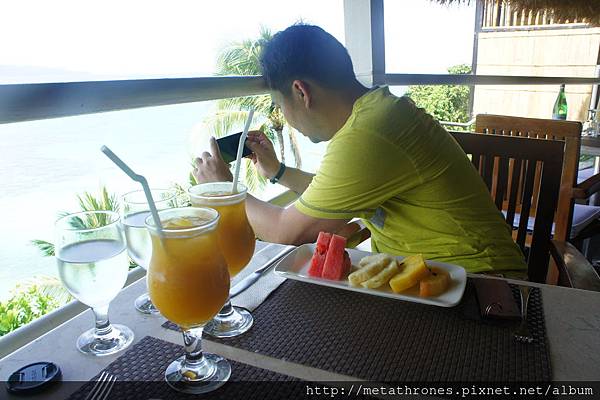 瞧,這位仁兄吃早餐還是要給身邊的景色拍照XD
