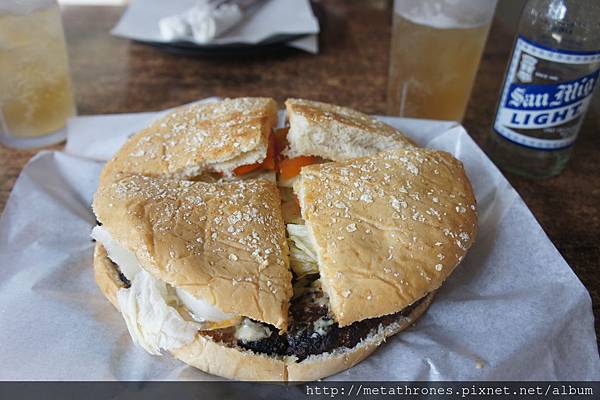 最後我們兩人還是沒有吃完這個漢堡,剩了四分之一,實在是吃不下啊,一般的女生應該是吃四分之一就飽了。