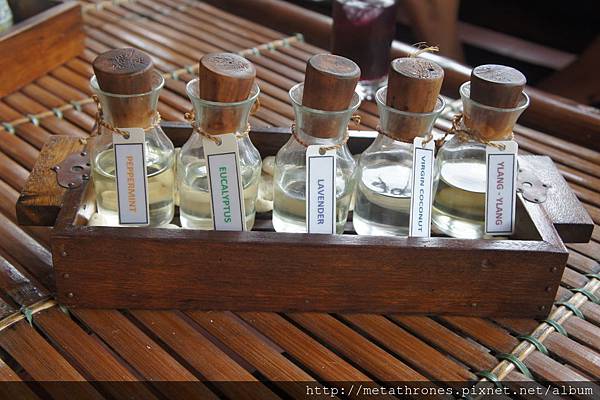 桌上有五種精油任君挑選,我們選了聽說只有當地有的YLANG
