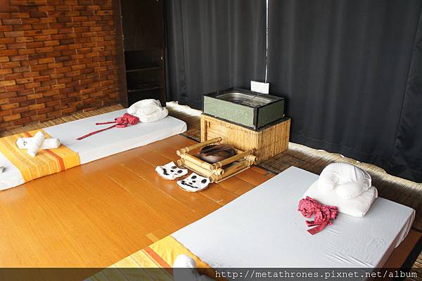 按摩師進來之後,請我們正坐,然後拉起我們的手貼在額頭和我們打招呼,才開始正式的按摩,