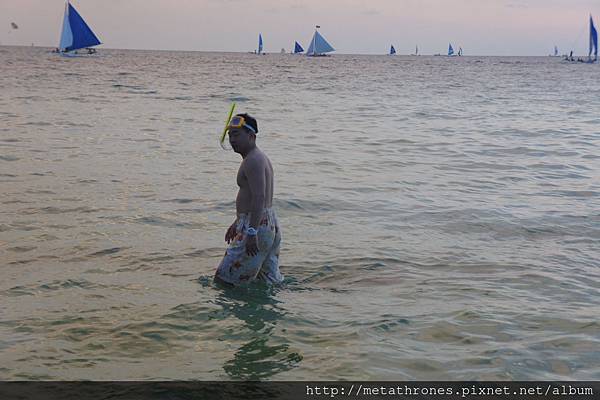 吃完飯,我們在沙灘邊找了個酒吧坐下來喝啤酒,享受這長灘島最後的夜晚