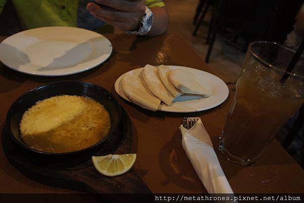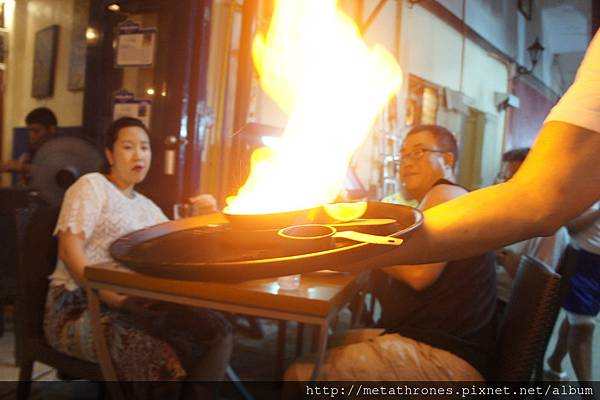 最著名的火烤起司,上菜的時候服務生會點火大喊「OPA」,我們剛坐下來的時候也被別桌上菜嚇到啊XD