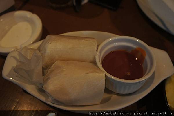 不過吃完起司餐我已經略飽了,又送上了雞肉捲,這個雞肉捲真的很好吃,尤其是醬料,是從來沒吃過的味道,十分特殊。