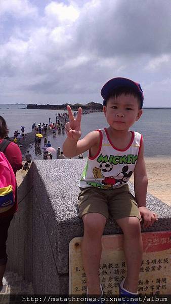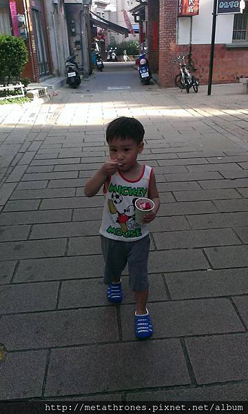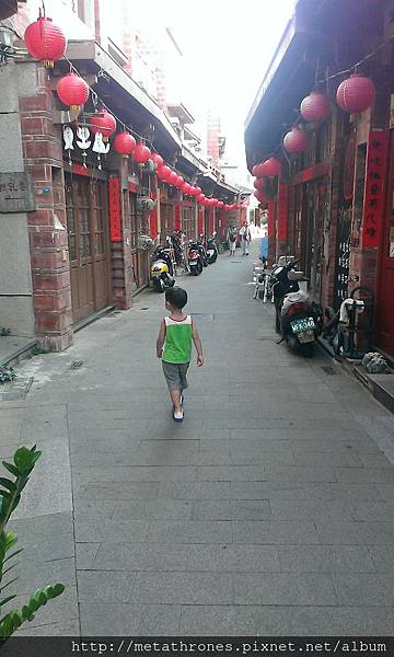 這個景點畢竟不大,我們再沿著老街走出來準備去叫計程車回飯店,又途經一間作創意T恤的店,看到一件寫著「外公的澎湖海」的衣服覺得非買給外公不可,便走進去買了一件,剛好安格斯想尿尿,便請店家借廁所讓安格斯方便一下,店員原本不願意外借,後來可能看我們是小孩子才勉為其難的讓安格斯借用了一下。