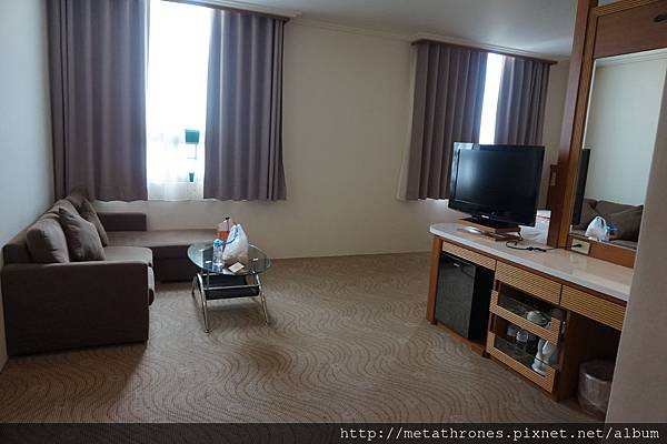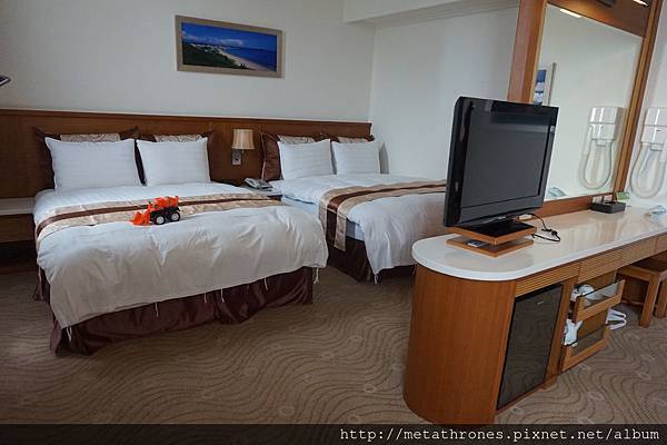 兩張大床加上客廳,空間夠大,小孩在裡面玩也可以玩很久,吃完飯我跟ㄤ倒在床上睡著了,心想安格斯看我們睡了也會跟來睡,沒想到,他自己在客廳玩很久才想到來叫我們。