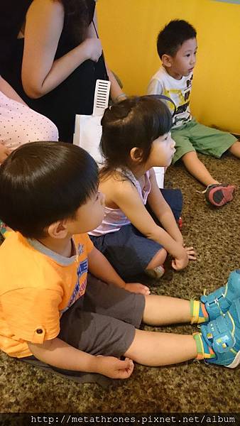孩子們還跑去舞台前照相,工作人員很NICE的、慢慢的、等我們都拍照完才請小朋友回舞台前方坐好XD