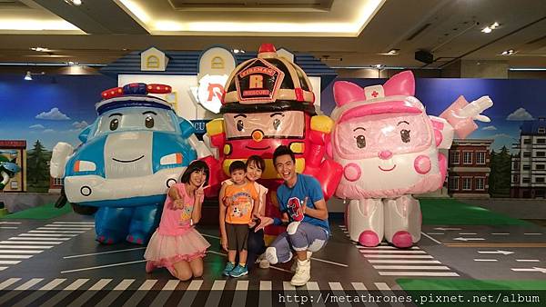 看完影片,排隊拍照的人已經非常少了,於是換我們上去和POLI等人照相
