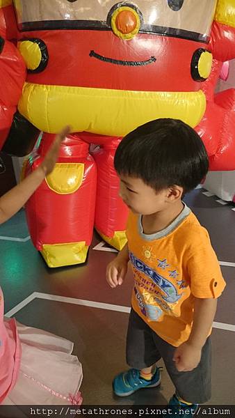 拍完照之後,旁邊的姊姊很親切的跟安格斯說,要不要跟ROY握握手啊?