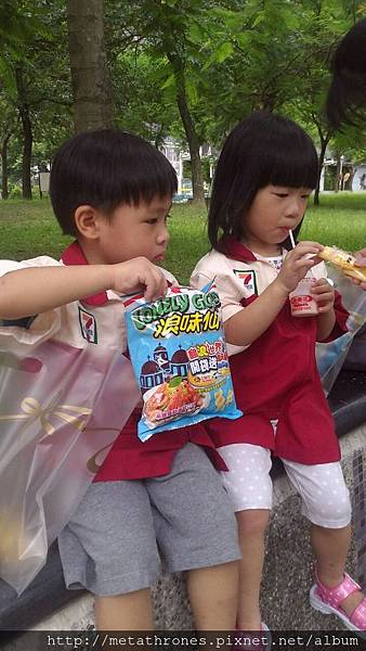 結束之後拿了獎狀還有一大袋的禮物,馬上在旁邊公園進行野餐了。