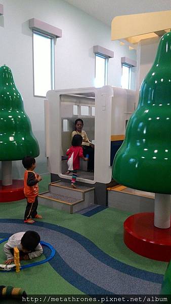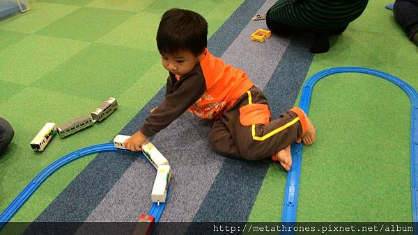 除了偌大的跑跳空間,鐵道玩具當然是不可或缺的啦,小人們當然又玩到不肯離開啦~~