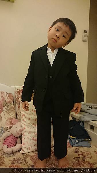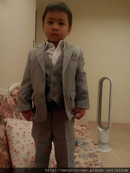 我一面幫安格斯試穿,一面問YOMI說:哥哥好帥對不對?