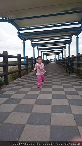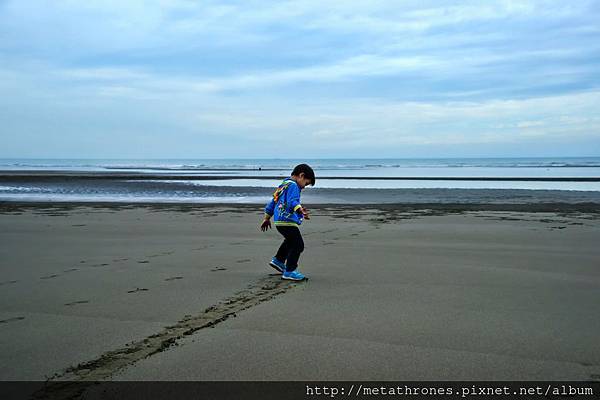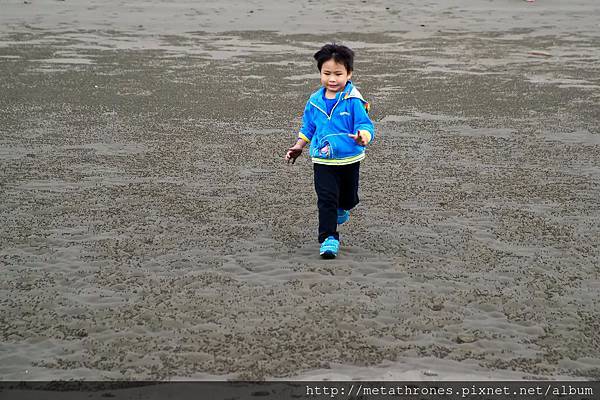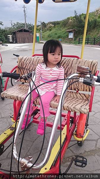 YOMI坐在車上看著哥哥姊姊玩,也下來在長亭走跳,就是不肯下去海邊玩...