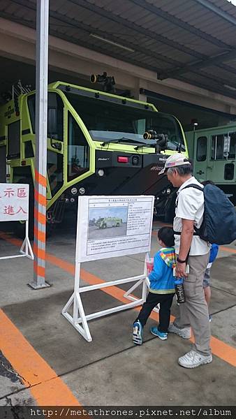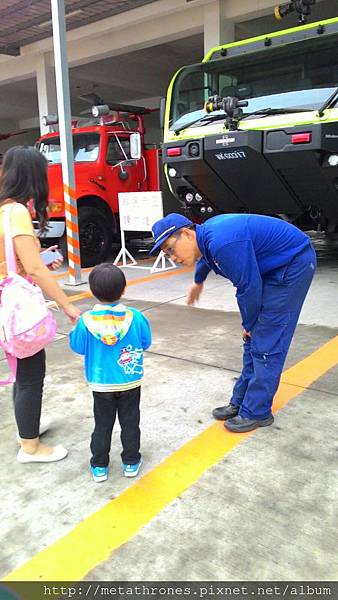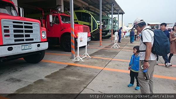 雖然是來看飛機的,但是安格斯最愛的還是消防車,在消防車這區來來回回的逛不停,