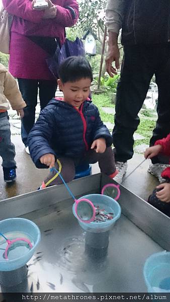 這次來,旁邊還有一區撈魚區,ANGUS撈得太暴力,很難撈到魚啊,倒是幫忙把魚都趕到別人家去了XD