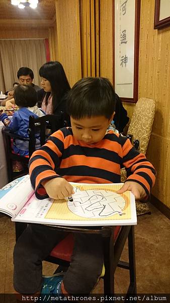 外出用餐一定要帶遊戲書,安格斯坐在旁邊畫迷宮(YOMI在另一邊貼貼紙),我們可以安心的大快朵頤。