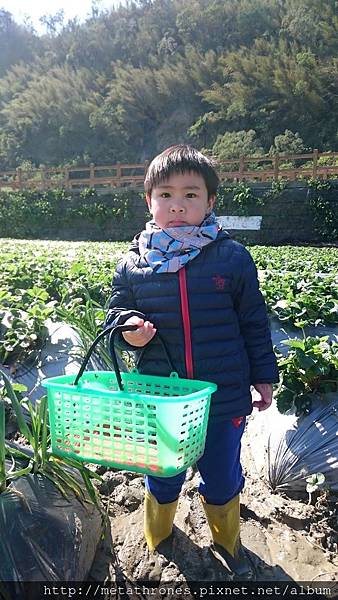 這次終於有機會穿上雨鞋去採草莓,小YOMI邊撿草莓邊說:好好玩喔~!!!