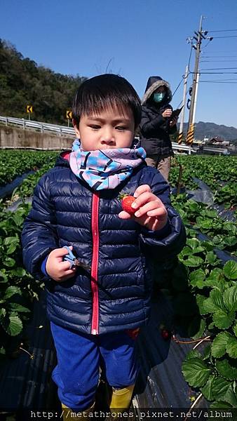 這是YOMI第一次採草莓,去年來的時候她在車上睡覺XD