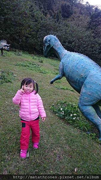離開前,YOMI還爬上小山坡去跟其他的恐龍們照相XD