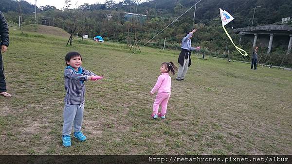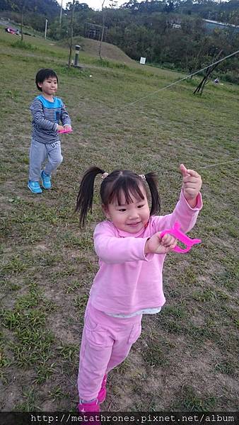這次是兩兄妹第一次放風箏,大人們把風箏放上去,再讓他們拉著,孩子們真是超級開心的。