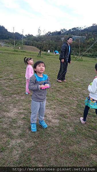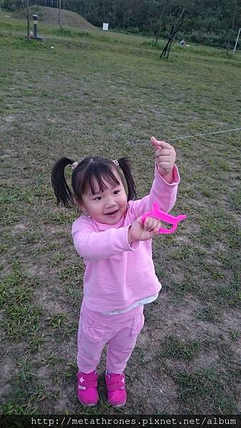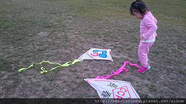 收風箏的時候,YOMI被線纏住了腳,一直跳跳跳想要把線抖掉XD