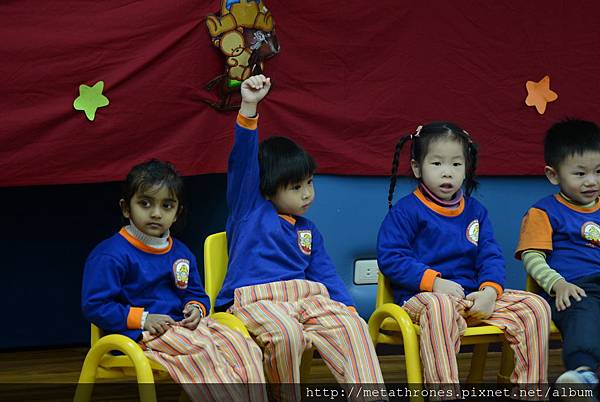 Tr. Marco拿著一本大書,邊講邊提問,孩子們則踴躍的舉手發言,就像平常在上課一樣,都是未經排練的,完全展現了孩子們在校使用英文的能力,