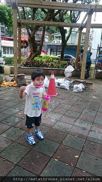 前三張圖是去玩泡泡 ,藍色跟紅色是泡泡機 ,粉紅色是泡泡水 。