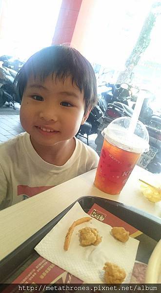 今天因為yomi眼睛被蟲咬 ,索性兩隻直排輪都請假 ,看完醫生 ,老公終於吃到了他叨念許久的肯德基 。