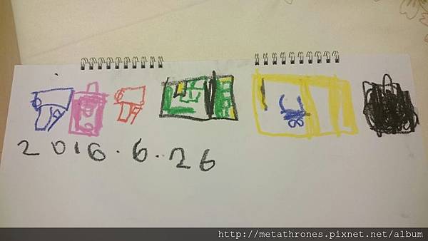 安格斯拿著圖畫日記去給爸爸看,爸爸都說得出來是什麼,安格斯高興的說:爸爸都知道耶!