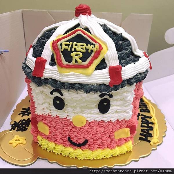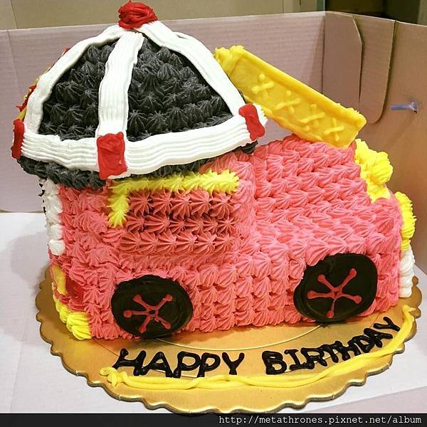 在拍賣上問了幾間,找到了小妤兒手繪蛋糕,寄了圖片之後,老闆說可以畫出消防火車,成品也非常令人滿意。