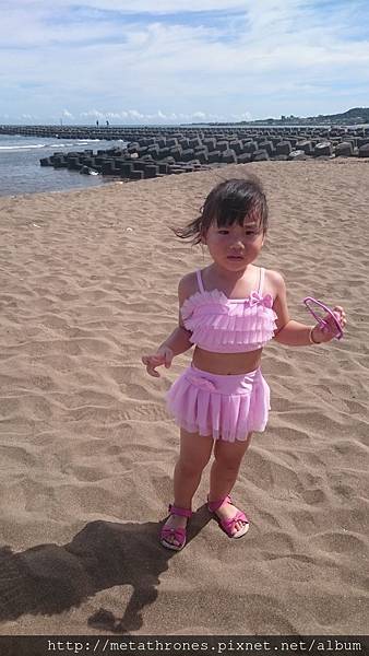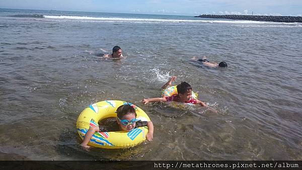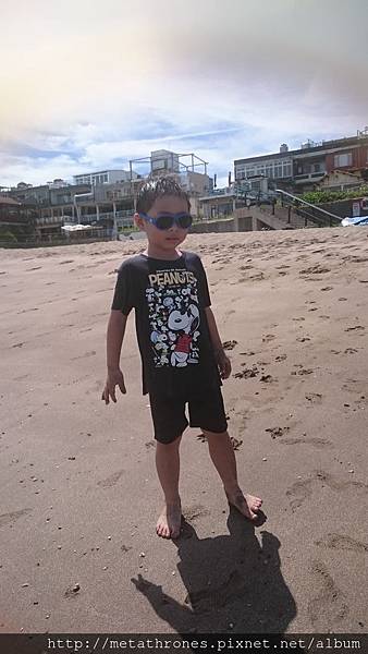 孩子們又繼續到海邊玩,早上的太陽把沙灘曬得好燙,