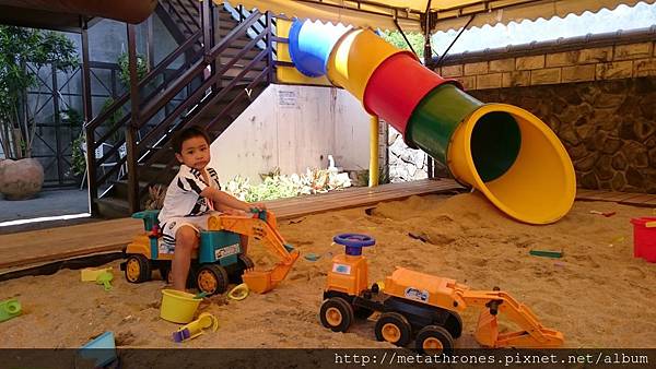 最棒的昰,還有遮陽的沙池溜滑梯可以玩耍