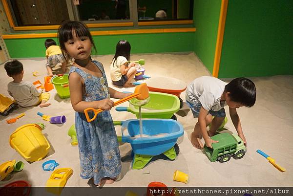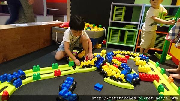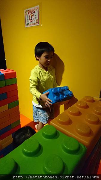 小孩則分著幾個遊戲區一路玩到最後面的大積木,蓋了超大的房子,還有隔間、窗戶、門