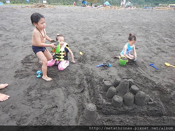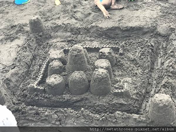 接下來,在老師的一聲令下,孩子們開始建造沙堡,哈哈,有老師在真的可以做出城堡耶!!!有城牆、護城河的城堡XD